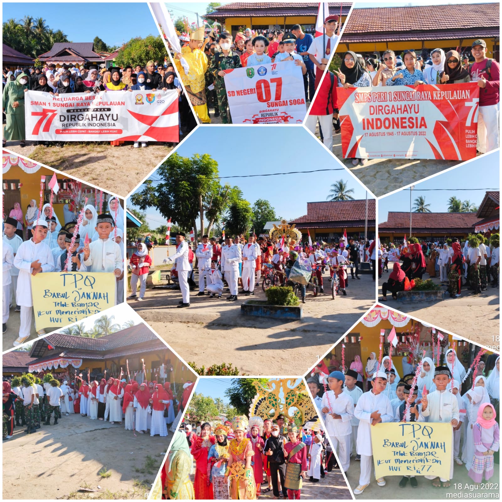 MediaSuaraMabes, Bengkayang (Kalbar) – Dalam rangka memeriahkan hari kemerdekaan Republik Indonesia yang ke 77 Desa Sungai Raya mengadakan kegiatan yang unik dan meriah salah satunya pawai karnaval yang di ikuti 1400 peserta dari tingkat SD, SMP PGRI, SMA, SMK dan masyarakat Sedesa Sungai Raya Kecamatan Sungai Raya Kepulauan Kabupaten Bengkayang Provinsi Kalimantan Barat pada Kamis (18/8/2022) pagi