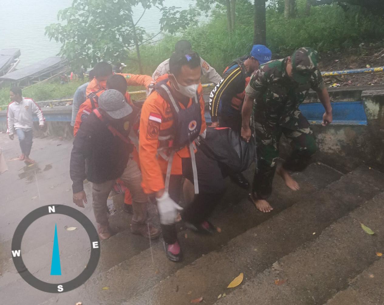 Pukul 17.30 WIB Tim SAR Gabungan Berhasil Menemukan korban a.n. Manisa (60) di Bendungan Batu Tegi Kec.Naningan Kab.Tanggamus dengan jarak ± 15 meter dari Lokasi Kejadian Dalam Keadaan Meninggal Dunia dan selanjutnya korban langsung dievakuasi ke Rumah Duka.