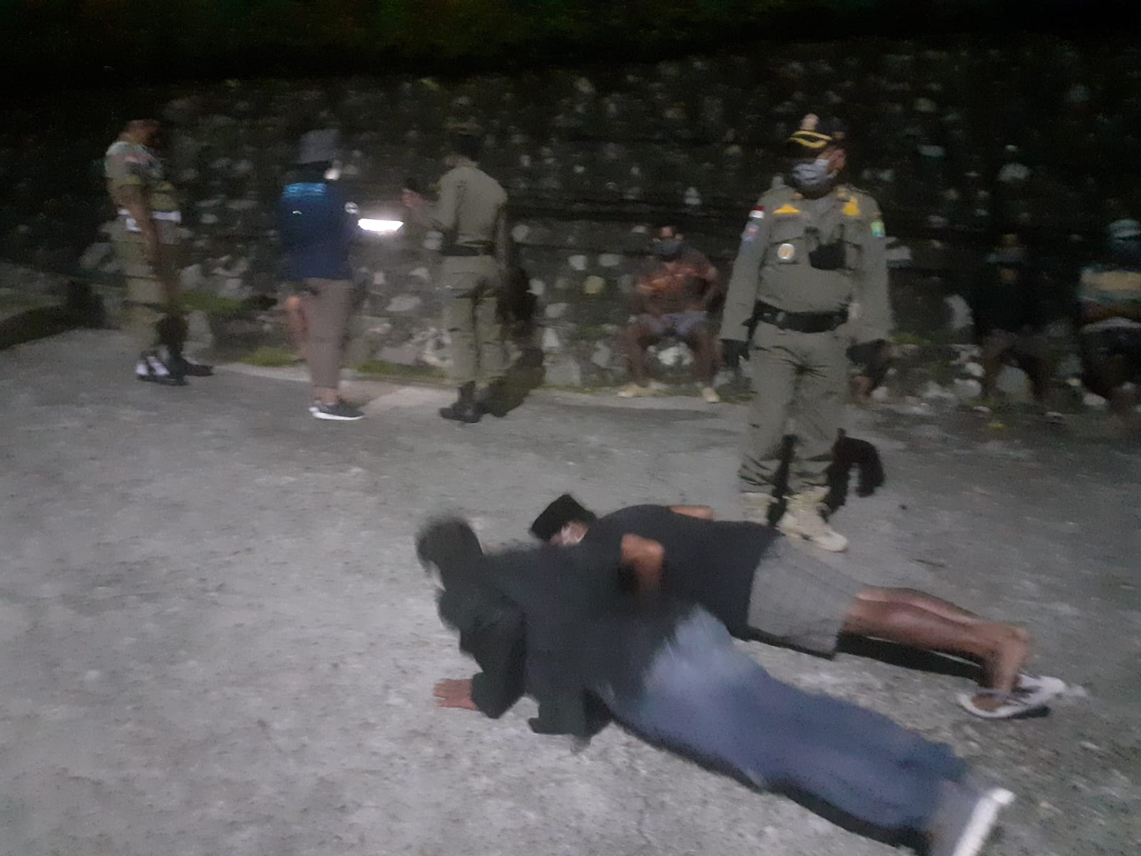 Setelah dilakukan pendataan dan pengarahan bagi mereka, untuk yang berusia muda kita berikan tindakan pembinaan berupa push up dan menyanyikan lagu Indonesia Raya, dan semua yang terjaring kita lakukan rapid tes antigen.