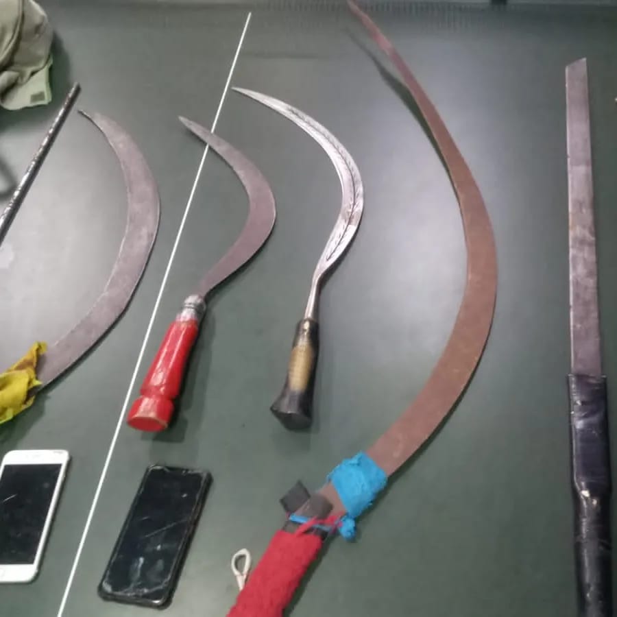 “5 orang pemuda berhasil kami amankan berikut berbagai senjata tajam diantaranya 4 buah senjata tajam jenis celurit, 1 buah samurai,” kata Rahmad.