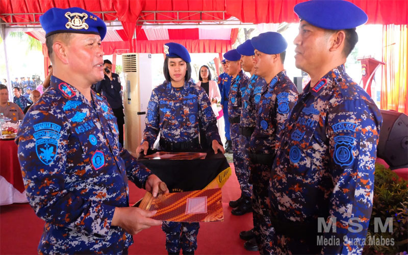 MediaSuaraMabes, Palu – Momen peringatan HUT ke-73 Polairud Polri tahun 2023, Kapolda Sulteng Irjen Pol Dr. Agus Nugroho, S.I.K.,S.H.,M.H. beri penghargaan ke personel Ditpolairud yang beprestasi bertempat di mako Ditpolairud Polda Sulteng, Jumat (1/12/2023).