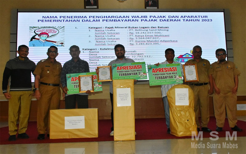 Kepala BPKPD Kabupaten Beltim, Kuspianto mengatakan pemberian penghargaan ini merupakan bentuk apresiasi Pemkab Beltim dalam pembayaran pajak daerah tahun 2023.