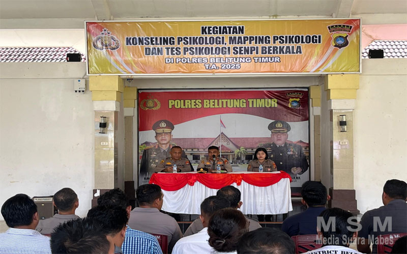 Tes psikologi senpi yang dilaksanakan di Polres Belitung Timur ini diadakan setiap tahun dengan tim psikologi dari Polda Kep. Babel yang dipimpin oleh IPTU Dara Ayudanti Hartati, S.Psi. selaku PS Paur Subbag Psipers Bag Psikologi Biro SDM Polda Kep. Babel, didampingi Brigpol M. Hafaz, S.Kom., Briptu Aldo Sahira, Bripda M. Maygi Sandi, S.Psi. dan Bripda Nur Fatia Azzahra, S.Psi.