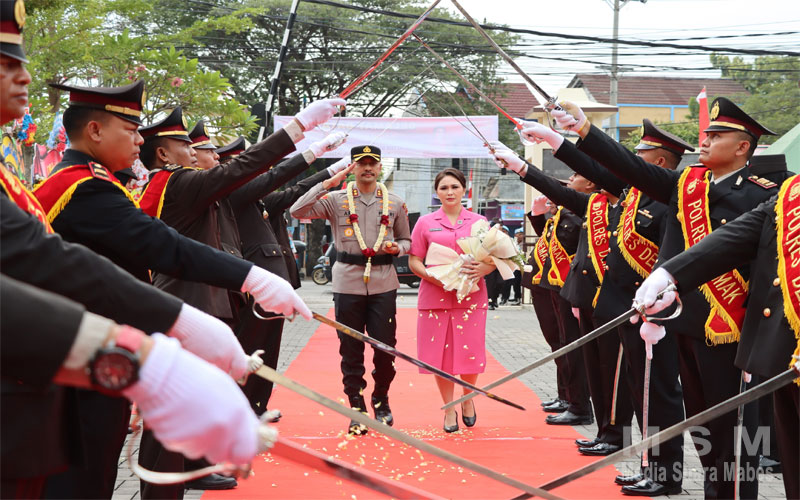Rangkaian acara tersebut diawali dengan kegiatan penyambutan Kapolres Demak AKBP Ari Cahya beserta Ketua Bhayangkari Cabang Demak Ny. Victoria Ari oleh Waka Polres Demak Kompol Aldino Agus Anggoro dengan prosesi pengalungan bunga dan dilanjutkan jajar kehormatan diiringi tarian adat penyambutan serta lantunan puisi.