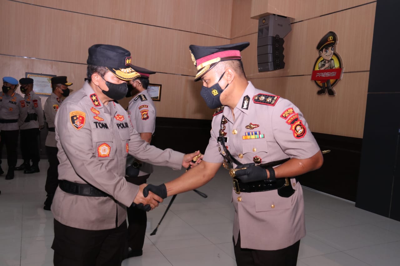 Serah terima jabatan (Sertijab) ini dilakukan langsung oleh Kapolda Sumsel Irjen Pol Drs Toni Harmanto, MH didampingi Wakapolda Sumsel Brigjen Pol Rudi Setiawan, SIK, SH, MH dan PJU Polda Sumsel di Gedung Promotor Mapolda Sumsel, Selasa (15/02/2022).