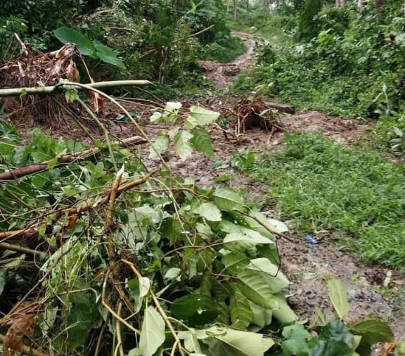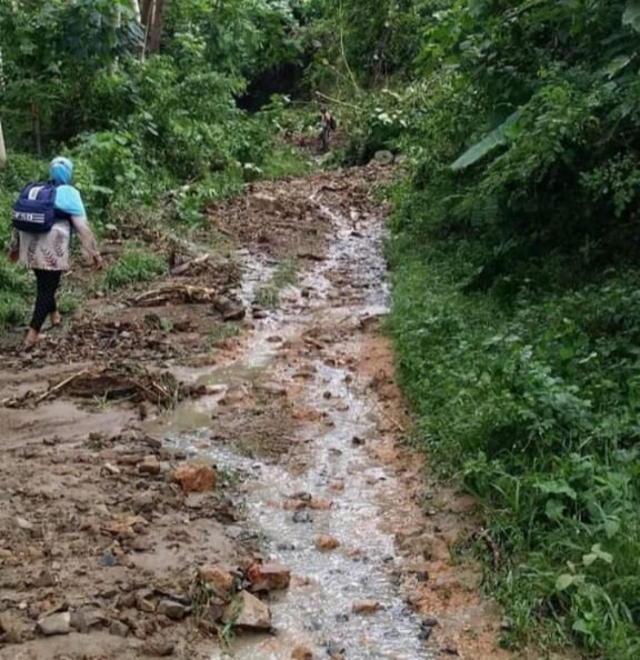 Ya kami warga lah yang sama – sama bergotong royong membersihkan longsor nya, yang penting asal bisa lewat aja dengan peralatan seadanya.