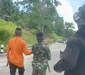 Kemudian tak lama berselang lewat mobil dari arah Arso melihat sang mama sedang kebingungan. “Saat saya lewat saya melihat ibunya sudah angkat anaknya dengan posisi terbalik dan panik menangis, Karna saya tidak berani ambil tindakan sendiri jadi saya pergi ke pos untuk melaporkan kejadian tersebut”. Ujar saksi mata.