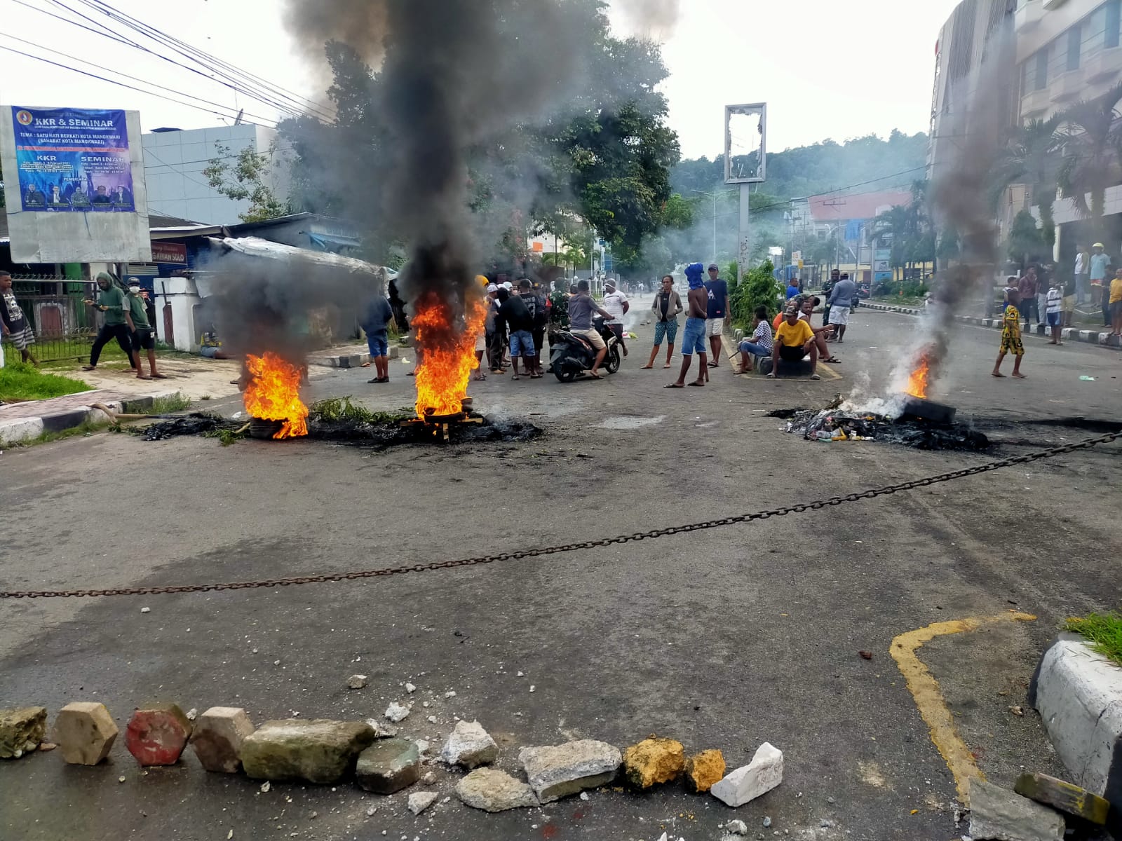 Saat masa melakukan aksi demo, Kapolres menjumpai warga Fanindi pantai yang sedang melakukan aksi pemblokiran jalan dan pembakaran ban bekas di jalan Yos Sudarso depan swiss bell Hotel yang menuntut kejelasan dari perkara tersebut, “ucap Arwam