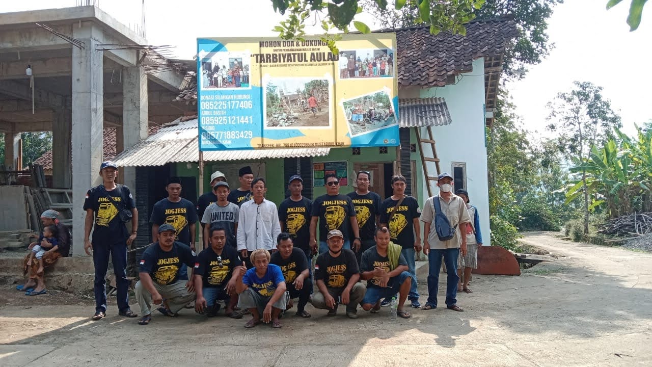 Para driver ini dipimpin lansung Supriyanto menuju ke pebangunan TPQ Tarbiyatul Aulad di ds Kayu Aris, Salaman Magelang menyerahkan bantuan semen untuk melanjutkan pembangunan TPQ yg mangkrak selama 4 bulan.