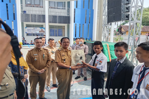 MediaSuaraMabes, Pesisir Barat – Kadis Kominfotik dan Persandian Pesisir Barat Suryadi, S.IP., MM. menginformasikan bahwa gedung Sekolah Menengah Pertama (SMP) Negeri 1 Krui yang bertempat Kecamatan Pesisir Tengah diresmikan secara langsung oleh Bupati Pesisir Barat Dr. Drs. Agus Istiqlal. Peresmian ditandai dengan penandatanganan prasasti dan pemotongan pita serta dilanjutkan pembagian alat tulis kepada Siswa/Siswi SMP Negeri 1 Krui.Selasa (10/01/2022).