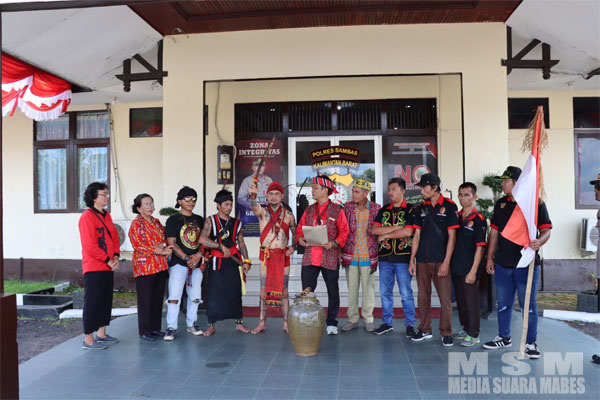 MediaSuaraMabes, Sambas Kalbar – Puluhan massa yang tergabung dalam Aliansi Dewan Adat Dayak (DAD) Kab.Sambas, Garda Borneo (GB) Korwil Sambas, Perhimpunan Perempuan Dayak (P2D) Kalbar dan Pemuda Dayak Sambas melaksanakan aksi Orasi dan Penyampaian tuntutan di depan Mapolres Sambas Jalan Kartiasa Sambas Jum’at (4/8/2023).