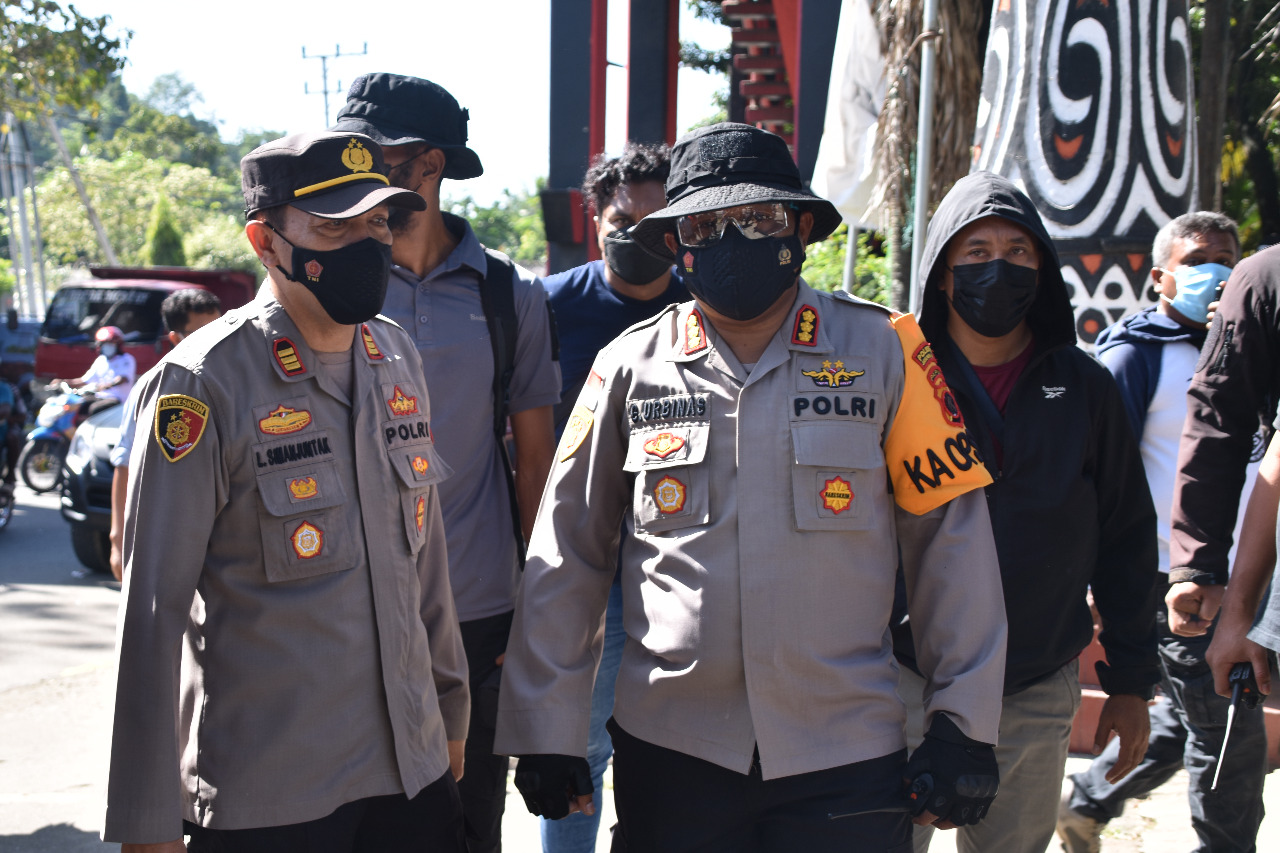 Saat diimbau untuk bubarkan diri karena tidak kantongi ijin, katanya, massa melempari batu kepada petugas. Saat ini puluhan massa aksi yang diamankan telah berada di Mapolresta untuk dimintai keterangan lebih lanjut.