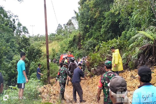 Pihak Koramil dan forkopimcam selalu berkomunikasi untuk mendatang kan alat berat supaya memudahkan upaya pembersihan dari material baru dan tanah yang menutupi ruas jalan.