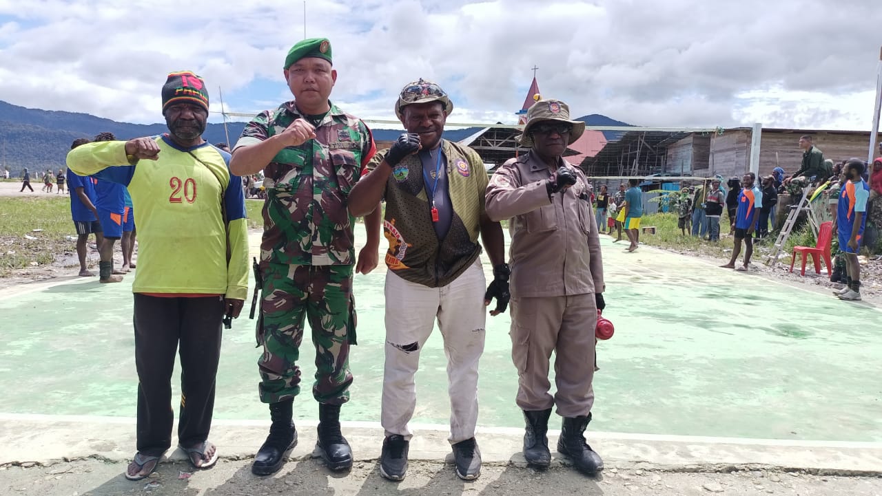 MediaSuaraMabes, Tigi – Anggota Koramil 1703-02/Tigi dipimpin Wadanramil Letda Inf Sudarno bersinergi Satpol PP, melaksanakan pengamanan dan monitoring berlangsungnya Turnamen Bola Voli Danramil Cup untuk meriahkan HUT RI KE-77 bertempat di Lapangan Thomas Adii, Desa Waghete Satu, Distrik Tigi, Kabupaten Deiyai, Rabu (10/08/2022).