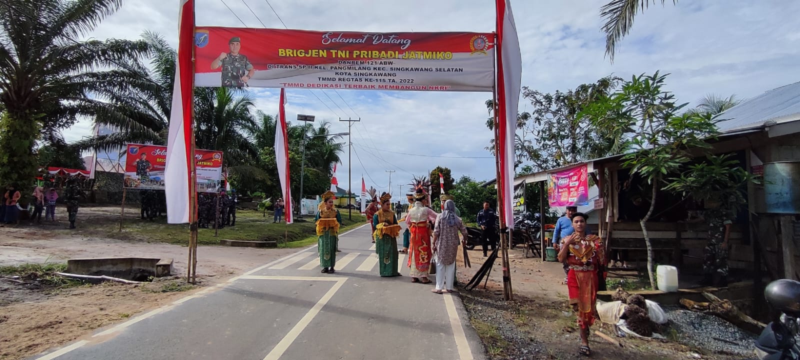 MediaSuaraMabes, Singkawang – Masyarakat kelurahan Pamilang khususnya di Trans SP I dan SP II, Kecamatan Singkawang Selatan tampak antusias menyaksikan rangkaian acara penutupan kegiatan TMMD ke-115 Kodim 1202/Skw,di lapangan SD 57 Pamilang, Rabu (09/11/2022).