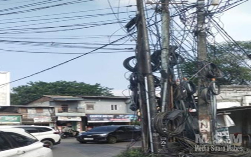 MediaSuaraMabes, Jakarta Utara – Kondisi kabel internet yang menjuntai rendah di kawasan Semper, Jakarta Utara, kian meresahkan warga. Kabel-kabel tersebut terlihat semrawut dan menggantung tepat di atas kepala pengguna jalan, khususnya di area Simpang Lima Semper yang dikenal sebagai titik lalu lintas padat.