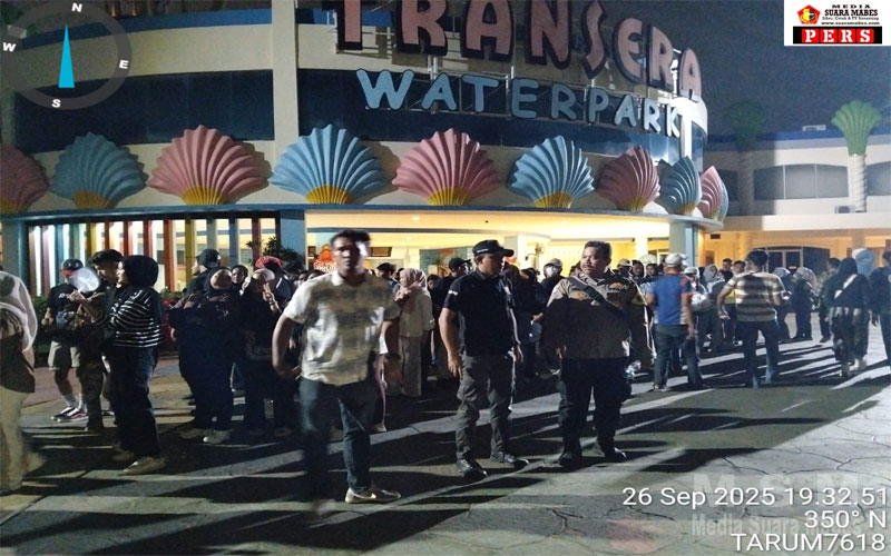 MediaSuaraMabes, Tarumajaya – Dalam rangka memastikan kelancaran dan keamanan kegiatan hiburan masyarakat, jajaran Koramil 02/Tarumajaya Kodim 0509/Kabupaten Bekasi, bersama Polres Metro Bekasi, Polsek Tarumajaya, serta Satpol PP Kecamatan Tarumajaya, melaksanakan apel gabungan persiapan pengamanan konser musik band yang digelar di TransEra Waterpark Harapan Indah, Tarumajaya, Kabupaten Bekasi, pada Jumat (26/09/2025).