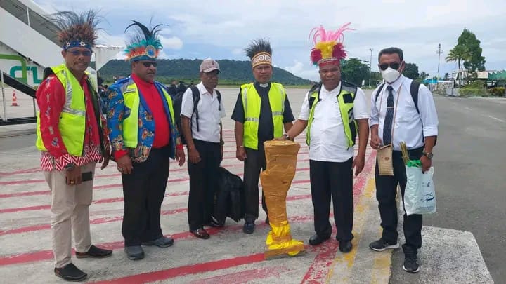 “Api Obor Sidang Sinode GKI di Tanah Papua XVIII tiba Bandar Udara Frans Kaisiepo Biak, Rabu (6/7) siang dan selanjut di taruh sejenak di ruang VIP bandar udara Frans kaisepo biak,