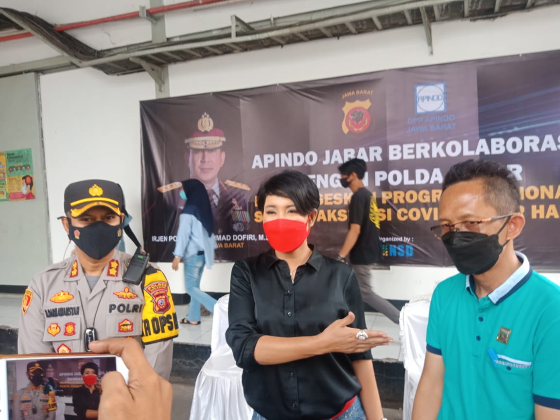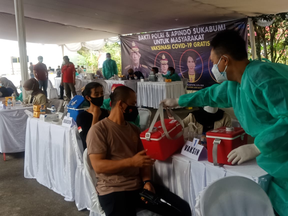 SuaraMabes, Sukabumi – Apindo jabar berkalaborasi dengan Polda Jabar mensukeskan program nasional sejuta vaksinasi Covid-19 per hari di area PT Muara Tunggal, Kecamatan Cibadak, Kabupaten Sukabumi, Sabtu, 14 agustus 2021.