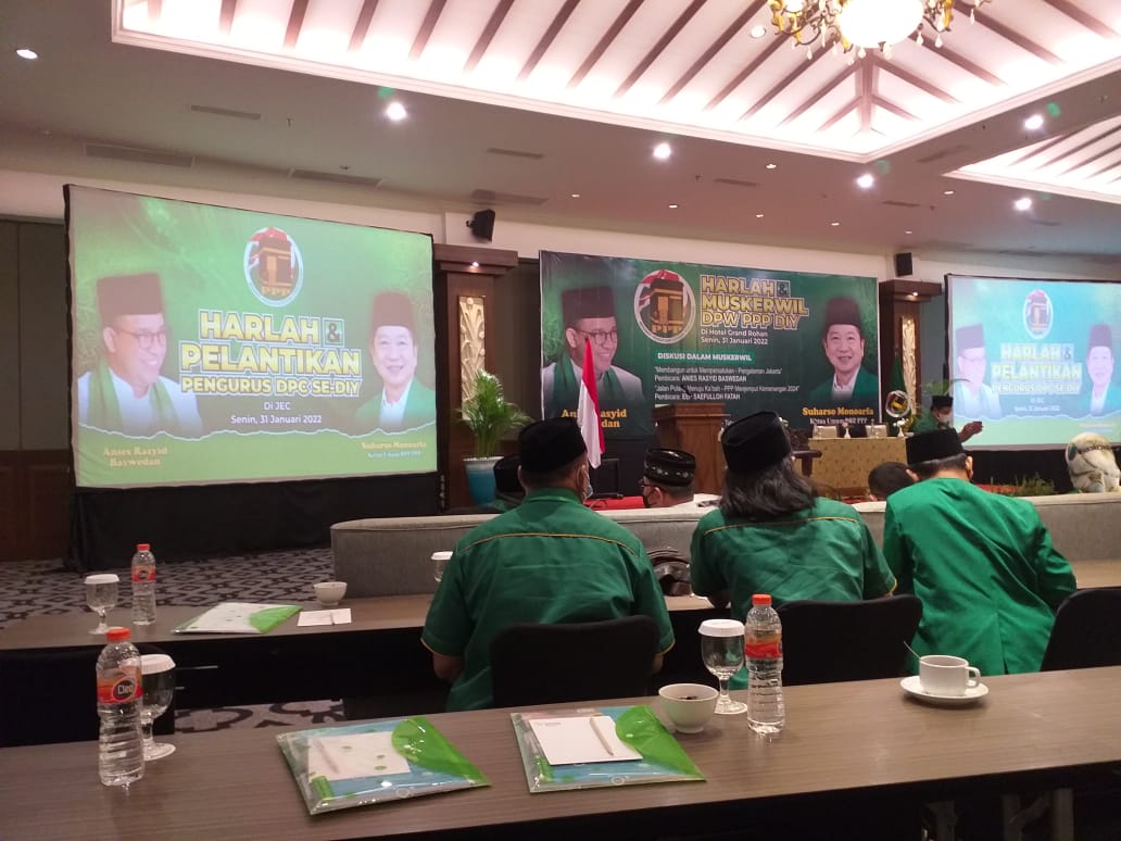 MediaSuaraMabes, Yogyakarta – Di awali dengan pembacaan ayat suci Al Quran dan lagu Indonesia Raya Muskerwil Partai Persatuan Pembangunan (PPP) DIY di buka oleh Sekjen DPP PPP Arwani Thomafi dengan pemukulan gong, bertempat di Grand Rohan Hotel Banguntapan Bantul di hadiri seluruh pengurus DPW PPP dan DPC PPP se- DIY, Senin (31/01/2022).