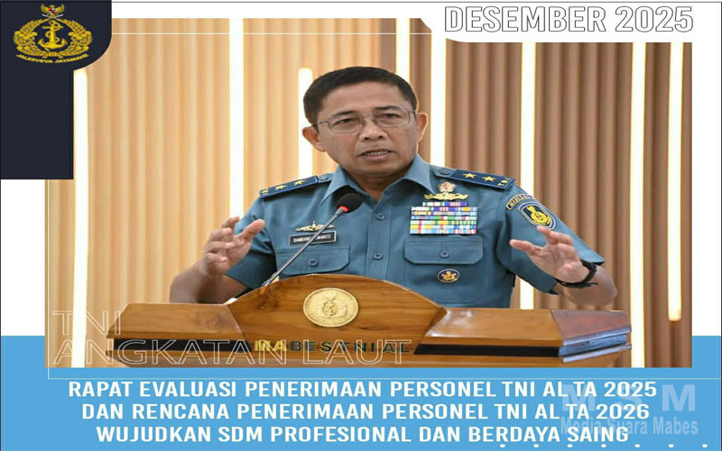 Hal tersebut disampaikan Asisten Personalia Kepala Staf Angkatan Laut (Aspers Kasal) Laksda TNI Bambang Irwanto pada kegiatan Pembukaan Rapat Evaluasi Penerimaan Personel TNI AL TA 2025 dan Rencana Penerimaan Personel TNI AL TA 2026 yang berlangsung di Selasar Bawah Denma Mabesal, Cilangkap, Jakarta Timur, Senin (15/12).