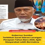 Gubernur Sumbar Terbitkan Surat Edaran Larangan Perayaan Tahun Baru 2026, Ajak Masyarakat Lebih Bermakna Daerah|December 27, 2025January 11, 2026by Wajidi Adiansyah MediaSuaraMabes, Padang – Gubernur Sumatera Barat H. Mahyeldi resmi menerbitkan Surat Edaran