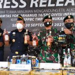Ribuan Liter Miras Ilegal Tangkapan Satgas Pamtas Diserahkan ke KPPBC Nunukan Daerah, Pemerintahan|September 20, 2021by Redaksi MediaSuaraMabes, Nunukan – Satuan Tugas Pengaman Perbatasan (Satgas Pamtas) RI-Malaysia Yonarhanud 16/SBC/3