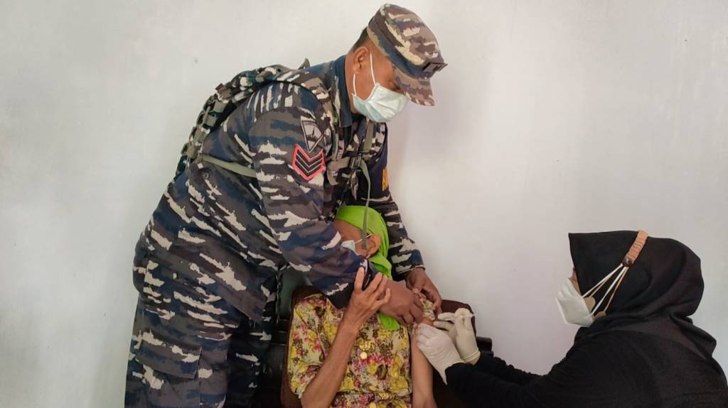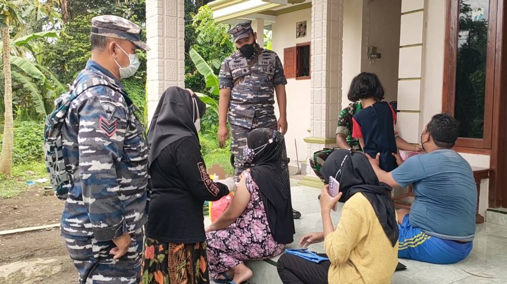 MediaSuaraMabes, BANYUWANGI — Komandan Pos TNI AL (Posal) Blimbingsari, Lanal Banyuwangi, Lantamal V Surabaya, Koarmada 2, Letda Laut (P) Triono bersama Babinpotmar Posal Blimbingsari, Babinsa Koramil Rogojampi, Babinkamtibmas Rogojampi, Tenaga Kesehatan (Nakes) Puskesmas Badean laksanakan serbuan vaksinasi keliling langsung menyasar terhadap masyarakat maritim dan sekitarnya yang belum mendapatkan imunisasi vaksin Covid-19 dengan cara jemput bola atau door to door di Dusun Pacemengan Desa Blimbingsari, Kecamatan Blimbingsari, Kabupaten Banyuwangi, Jawa Timur. Kamis, (10/02/2022).