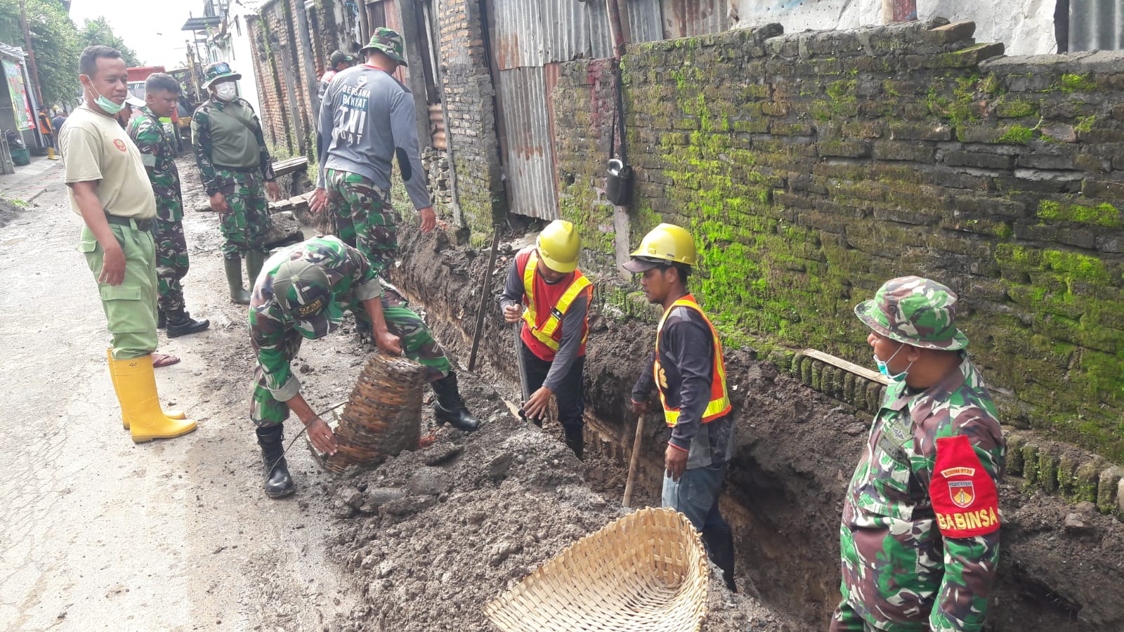 Babinsa Kemlayan barsama warga binaanya saling bahu – membahu dalam kerja bakti pembuatan saluran air. Kegiatan yang dilaksanakan itu tampak dengan semangat dan antusias yang tinggi baik dari warga masyarakat maupun Babinsa dari Koramil 03/Serengan ini, Selain ikut dalam melaksanakan pembangunan fasilitas kampung, kerja bakti antara TNI dan masyarakat ini di harapkan bisa mempererat tali silaturahmi.
