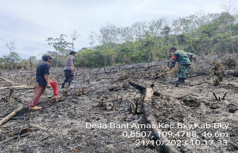 MediaSuaraMabes, Bengkayang – Tingkatkan antisipasi dan pengendalian kebakaran hutan dan lahan (Karhutla), Babinsa Koramil 1202-01/Bky Sertu Paulinus Bersama Tim dan Masyarakat melakukan pengecekan hotspot bertempat di Desa.Bani Amas, Kec. Bengkayang, Kab.Bengkayang.
