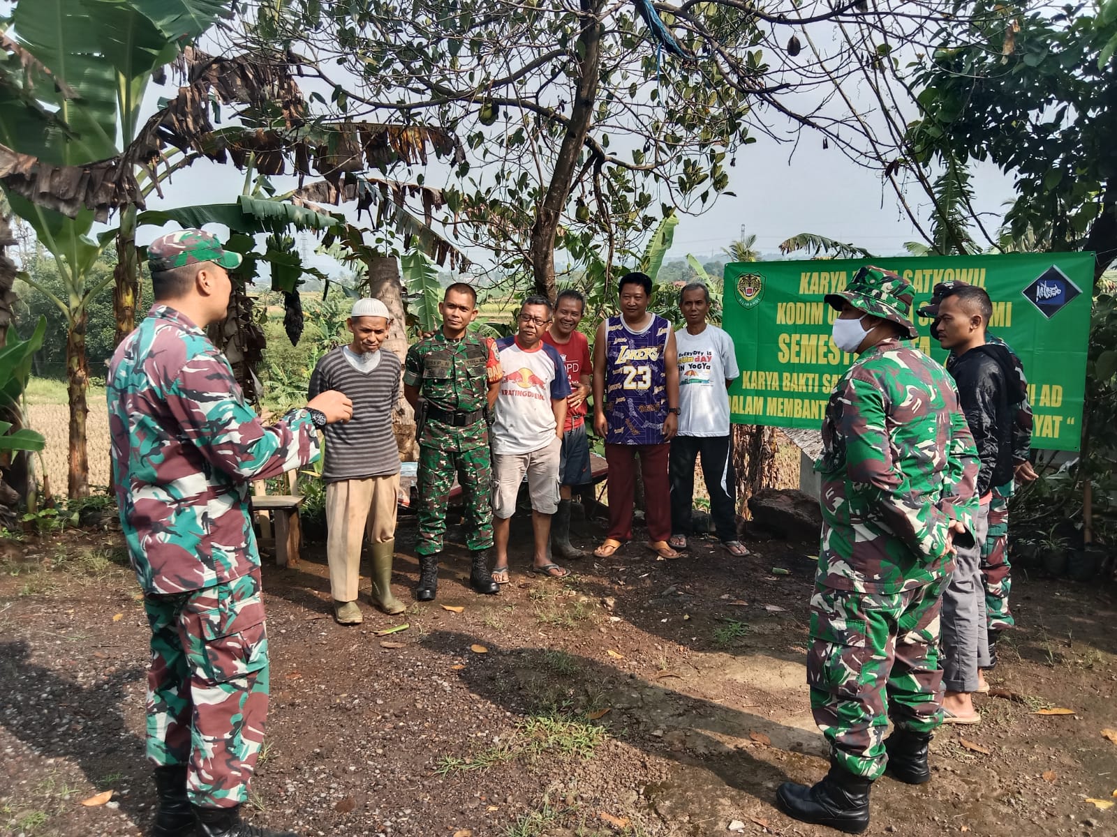 MediaSuaraMabes, Sukabumi – Tampak hadir dilokasi tersebut perwakilan dari Kodim 0607 Kota Sukabumi Serda Usep dan ditemani beberapa rekan Anggotanya serta tokoh masyarakat yang ada disekitaran lokasi untuk ikut berperan dalam Karya Bakti.