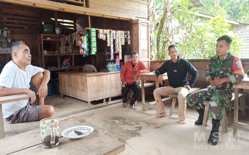 MediaSuaraMabes, Sekadau – Babinsa Koramil 1204-18/Nanga Mahap Praka Oky Wijayanto melaksanakan kegiatan Komunikasi Sosial (Komsos) dengan masyarakat warga binaan, bertempat di di warung kopi di desa Nanga mahap Kecamatan Nanga mahap kabupaten Sekadau. Minggu (24/3/2024)