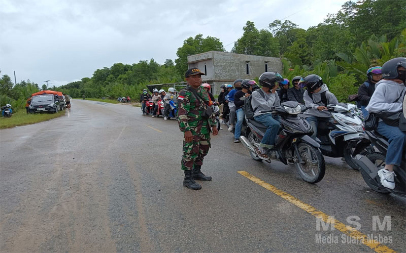 MediaSuaraMabes, Sambas – Babinsa Sebubus Koramil 08/Paloh Sertu Larasulu laksanakan pemantauan Arus mudik dan liburan lebaran yang melintas di penyeberangan menggunakan jasa angkutan kapal feri yang berada di Sungai Sumpit, Kec. Paloh, Kab. Sambas, Sabtu (13-04-24).