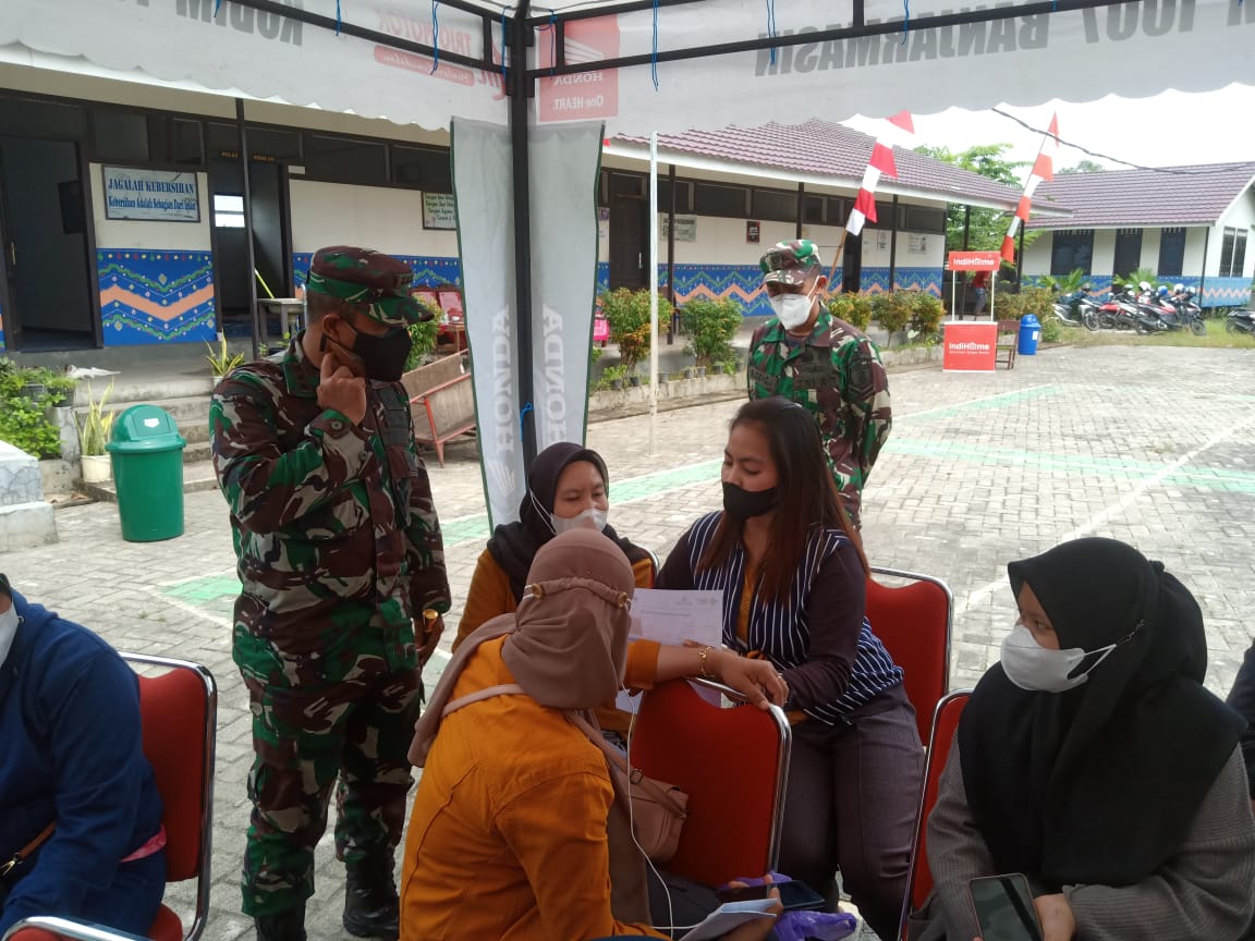 MediaSuaraMabes, BANJARMASIN – Kodim 1007/Banjarmasin menggelar serbuan vaksinasi mobile di Kelurahan Mantuil, Kamis (26/8). Kegiatan yang dilaksanakan di halaman SD Gunung Meranti itu menargetkan pemberian 500 dosis vaksin.