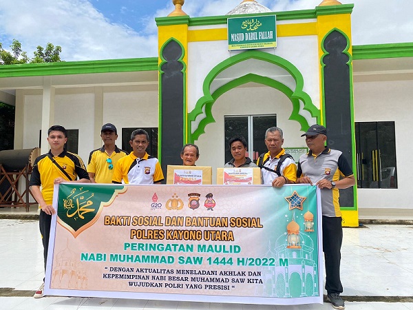 Kapolres Kayong Utara AKBP Arief Hidayat, S.H., S.I.K. yang memimpin secara langsung giat tersebut menegaskan bahwa kegiatan Bhakti Sosial di laksanakan dalam rangka memperingati Maulid Nabi Muhammad SAW 1444 H dengan bentuk kegiatan bersih-bersih di tempat ibadah dan memberikan bantuan sembako bagi pengurus masjid maupun masyarakat sekitar, serta berharap kepada masyarakat dalam waktu dekat akan di laksanakan Pemilihan kepala desa secara serentak agar kita tidak terprovokasi adanya orang2 yang tidak bertanggung jawab, jadikan Kayong Utara sebagai pemilihan kepala desa yang aman damai dan tidak ada gejolak yang akan membuat kita susah sendiri, tutup AKBP Arief.