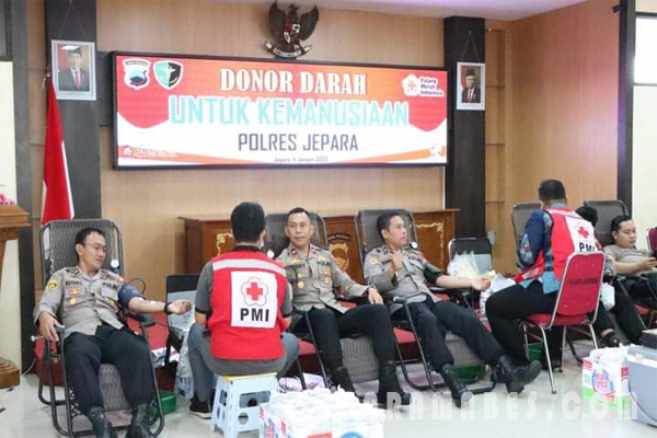 MediaSuaraMabes, Jepara – Polres Jepara Polda Jateng menggelar bakti sosial donor darah bekerja sama dengan PMI Jepara, di Aula Endra Dharmalaksana Polres Jepara. Donor darah untuk kemanusiaan digelar pagi ini (04/01/2023).