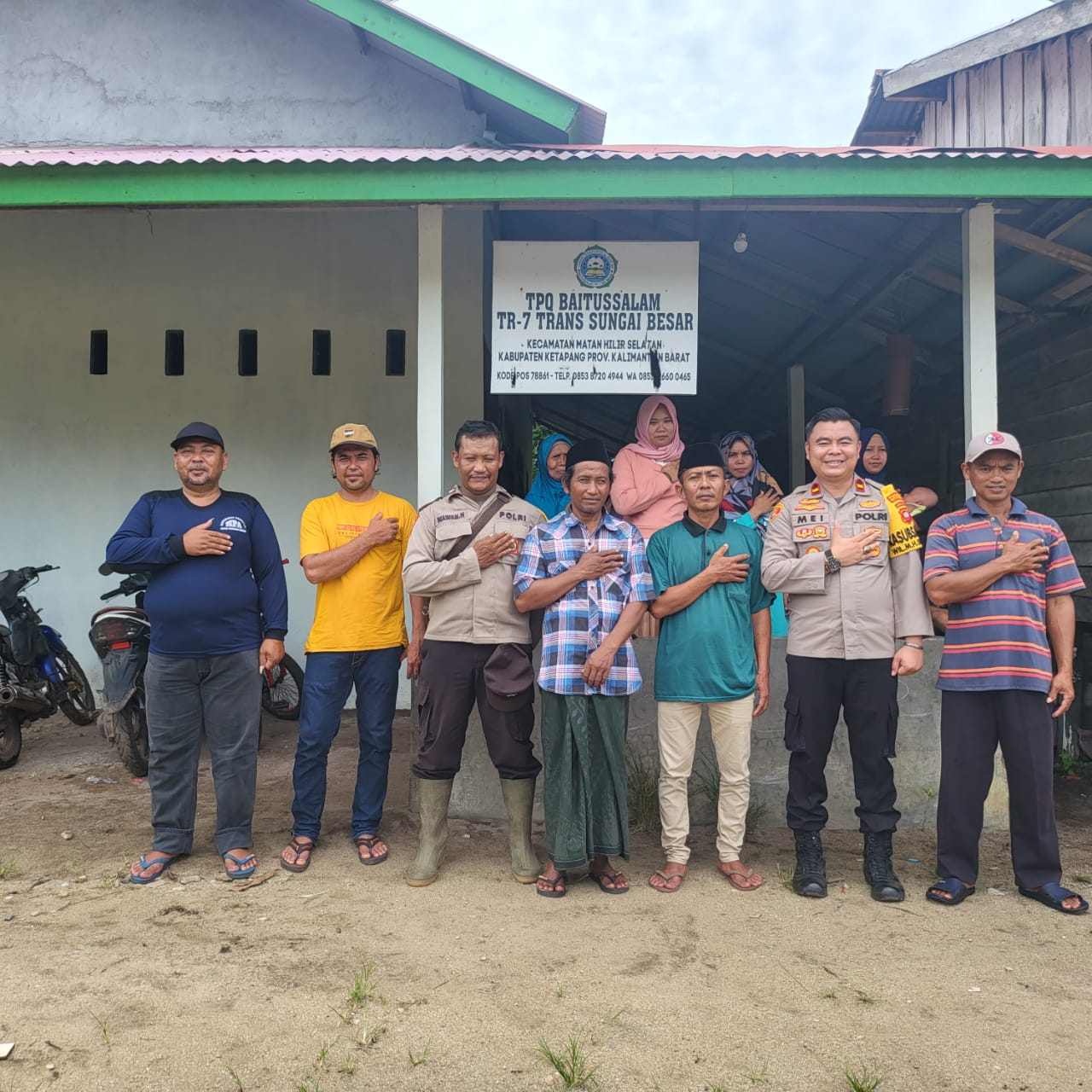 Kapolsek Matan Hilir Selatan dan Ketua Ranting Bhayangkari Polsek Matan Hilir Selatan beserta Bhabinkmtibmas Desa Sungai Besar melaksanakan kegiatan dalam rangka penyerahan bantuan berupa Alqur’an Besar, Sajadah dan Alqur’an Kecil Iqra ( Zus Amma ) di TPQ Baitussalam TR-7 Transmigrasi Desa Sungai Besar Kecamatan Matan Hilir Selatan, Kabupaten ketapang.