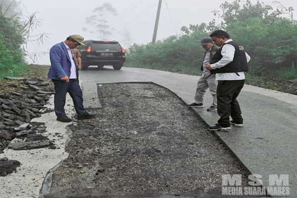 Bupati Humbahas dan rombongan berhenti di beberapa titik jalan guna memastikan progres pembangunan. Anggaran dalam pembangunan jalan itu sebesar Rp.9.718.441.300.