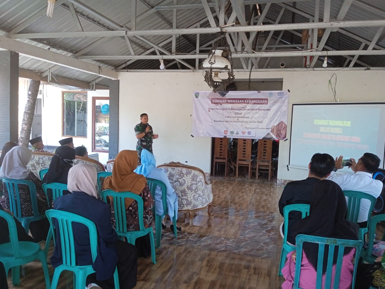 MediaSuaraMabes, Jepara – Guna menanamkan rasa cinta tanah air bagi generasi muda serta lembaga masyarakat, Danramil 12/Donorojo Kapten Chb Edi Susanto berikan materi wawasan kebangsaan kepada mahasiswa institut pesantren Mathali’ul Falah (IPMAFA) Pati yang melaksanakan KKN.