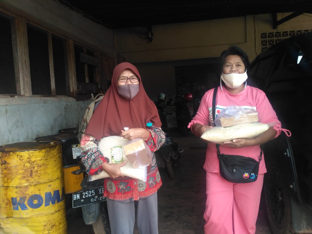 Tjong Jung Min warga desa Selingsing kecamatan Gantong Kabupaten Belitung Timur, membagikan sembako bersubsidi kepada masyarakat desa Selingsing satu paket yang berisi 5 kg beras dan 1/5 kg kurma dengan harga Rp 35.000 perpaket. Jum’at, (23/4/2021).