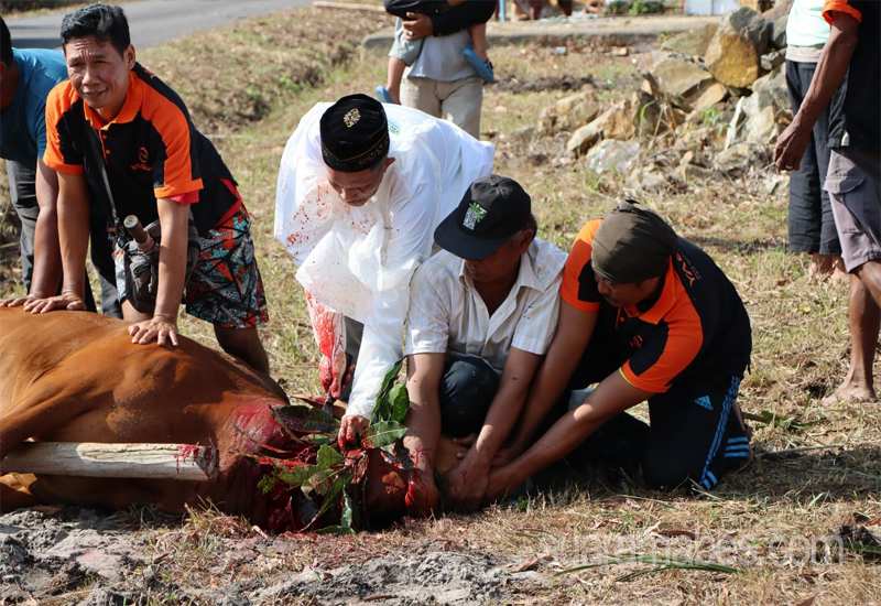 Pemotongan hewan qurban, tetap memperhatikan protokol kesehatan untuk mencegah penyebaran COVID-19.(Ramli).