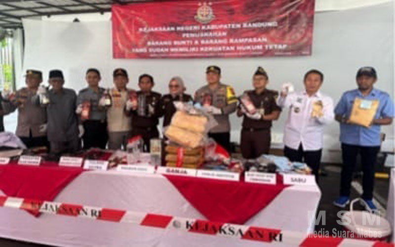 MediaSuaraMabes, Kab.Bandung Jawa Barat – Kejaksaan Negeri Kabupaten Bandung melaksanakan kegiatan pemusnahan terhadap barang bukti perkara, Baik tindak pidana umum maupun bukti perkara tindak pidana khusus berdasarkan Putusan Pengadilan Negeri Bale Bandung.