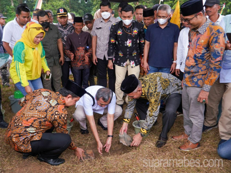 MediaSuaraMabes, Kampar – Bersama Gubernur Riau Drs Syamsuar,M.Si dan Anggota DPR RI Syahrul Aidi Ma’azad,Lc.MA, Pj Bupati Kampar Dr H Kamsol,MM melakukan peletakan batu pertama pembangunan Jembatan Gantung Desa Buluh Cina Kecamatan Siak Hulu, Sabtu (11/6/2022).