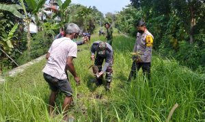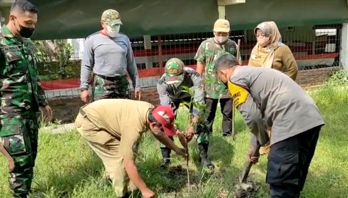 Anggota Koramil 03/Serengan Kodim 0735/Surakarta bersama sama dengan Warga masyarakat kelurahan Joyotakan melakukan aksi tanam puluhan pohon, Senin (28/3/2022).