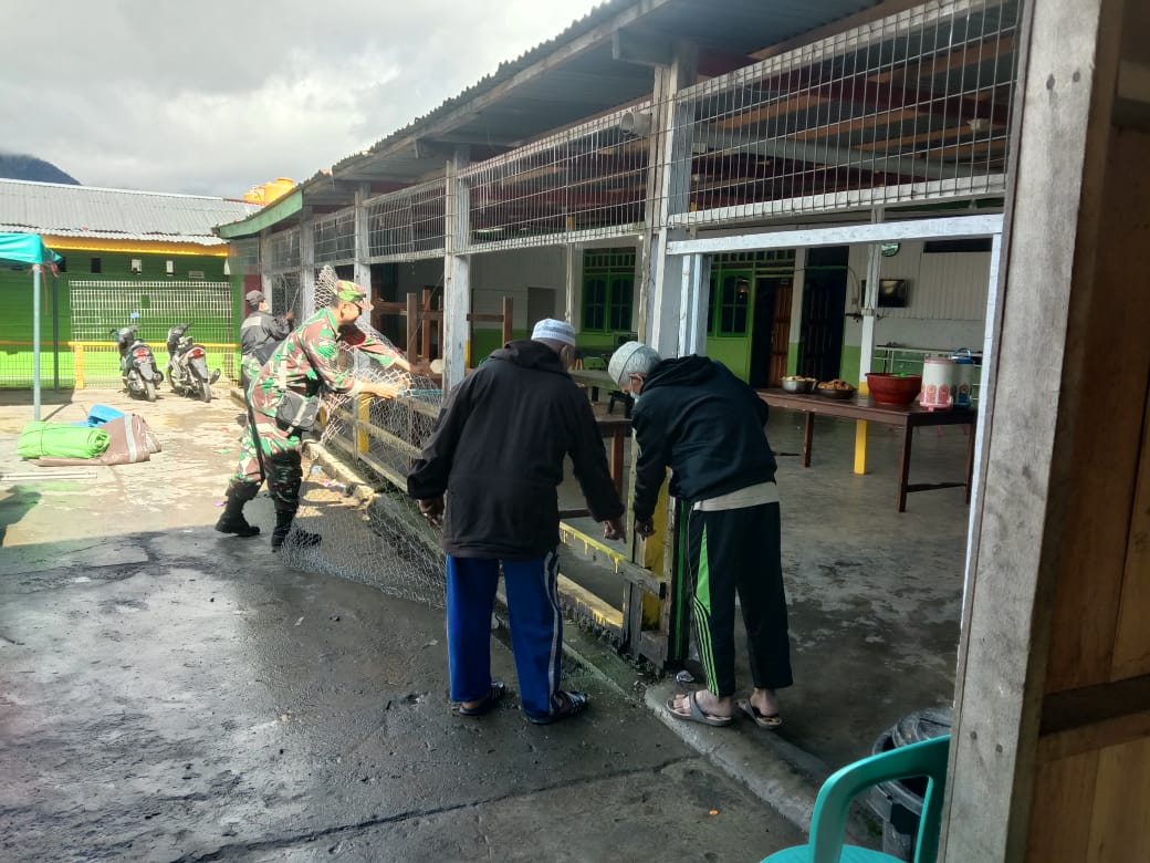 SuaraMabes, Moanemani – Mempererat tali silaturahmi Babinsa Koramil 1705-04/Moanemani Serma Doni melaksankan karya bakti dengan tokoh masyarakat pasar lama di kediaman Bapak Akke bersama dengan beberapa tokoh masyarakat pasar lama membantu pembuatan pagar desa Ikebo Distrik Kamuu Kabupaten Dogiyai ( Senin, 06 September 2021 )