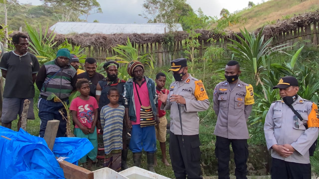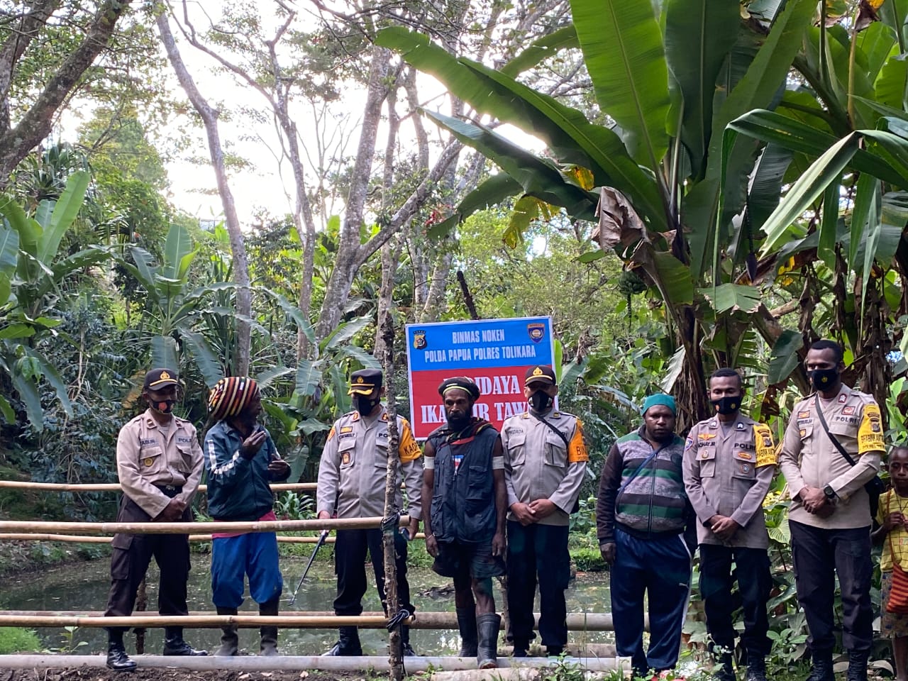 SuaraMabes, Kolengger – Kapolres Tolikara AKBP Dr. Y. Takamully, S.H, M.H didampingi Kasat Binmas Iptu Widada dan Anggota Bhabinkamtibmas Polres Tolikara Memberikan Pelatihan Budi Daya Ikan Air Tawar kepada Kelompok Tani Desa Bandia. Jumat (04/06).
