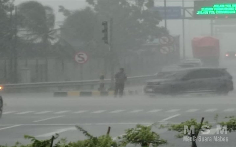 Bertempat di depan pintu gerbang Tol Tarumajaya, Aipda Arif Pramono terlihat mengarahkan dan menuntun warga serta pengendara yang terjebak banjir agar dapat melintas dengan aman. Tanpa menghiraukan derasnya hujan dan kondisi jalan yang tergenang, ia tetap menjalankan tugas demi kelancaran dan keselamatan masyarakat.