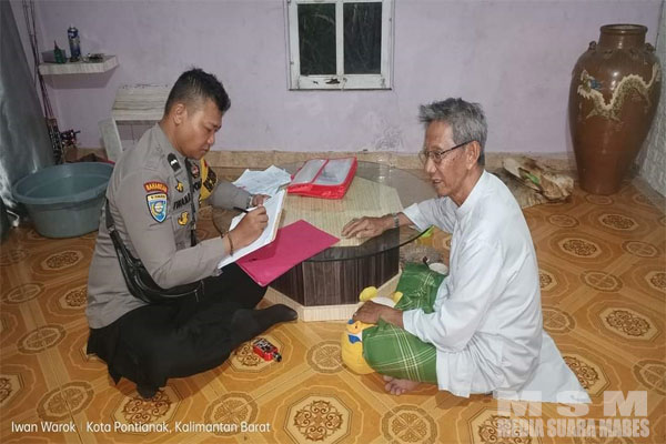 MediaSuaraMabes, Pontianak Kalbar – Bhabinkamtibmas Siantan Hulu Polsek Pontianak Utara Polresta Pontianak Aipda Iwan Rudhianto melaksanakan giat DDD, sambangi masyarakat untuk memberikan Himbauan Kamtibmas, bertukar informasi dan mempererat hubungan silaturahmi dengan Warga masyarakat binaannya, Kamis (16/3/2023).