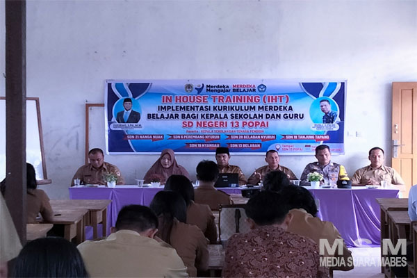 MediaSuaraMabes, Melawi Kalbar – Bhabinkamtibmas Polsek Ella Hilir Bripka Maskur,S.Ap.,menghadiri kegiatan Implementasi Kurikulum Merdeka Belajar Bagi Kepala Sekolah dan Guru di Aula SDN 13 Desa Popai Kecamatan Ella Hilir.