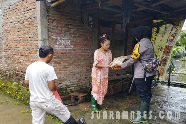 MediaSuaraMabes, Jepara – Bhabinkamtibmas Polsek Welahan jajaran Polres Jepara Polda Jateng Briptu Fetty bersama Babinsa dan pemdes Welahan, bergerak untuk menyalurkan bantuan sosial (bansos) bagi warga di wilayah binaannya yang terdampak banjir.